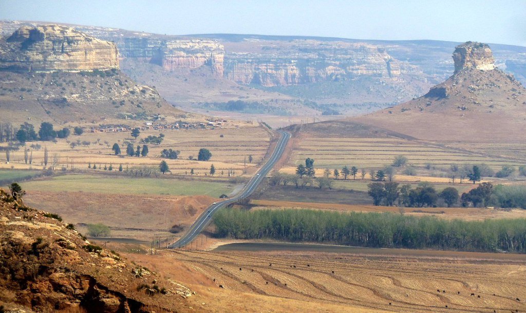 Looking southwest along the R711 route between Clarens and Fouriesburg, eastern Free State (Courtesy Wikimedia Commons JMK)