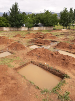 That song came to my mind instantly when we started digging the footings for our new home. Never having built before in my live and without warning my ground started shaking the day we got the news that work for footings needed to be stopped. The grounds in Clarens are not without surprises and so we got presented with ours: “As you know the soil that we found when digging on site is not the best load bearing soil in the world. Although this structure is not a multi story building or very heavy we are still required to construct the foundations and building according to the engineered signed off design” Boom. Oh yeah. Double boom. FOUNDATION DELAYS. Great.